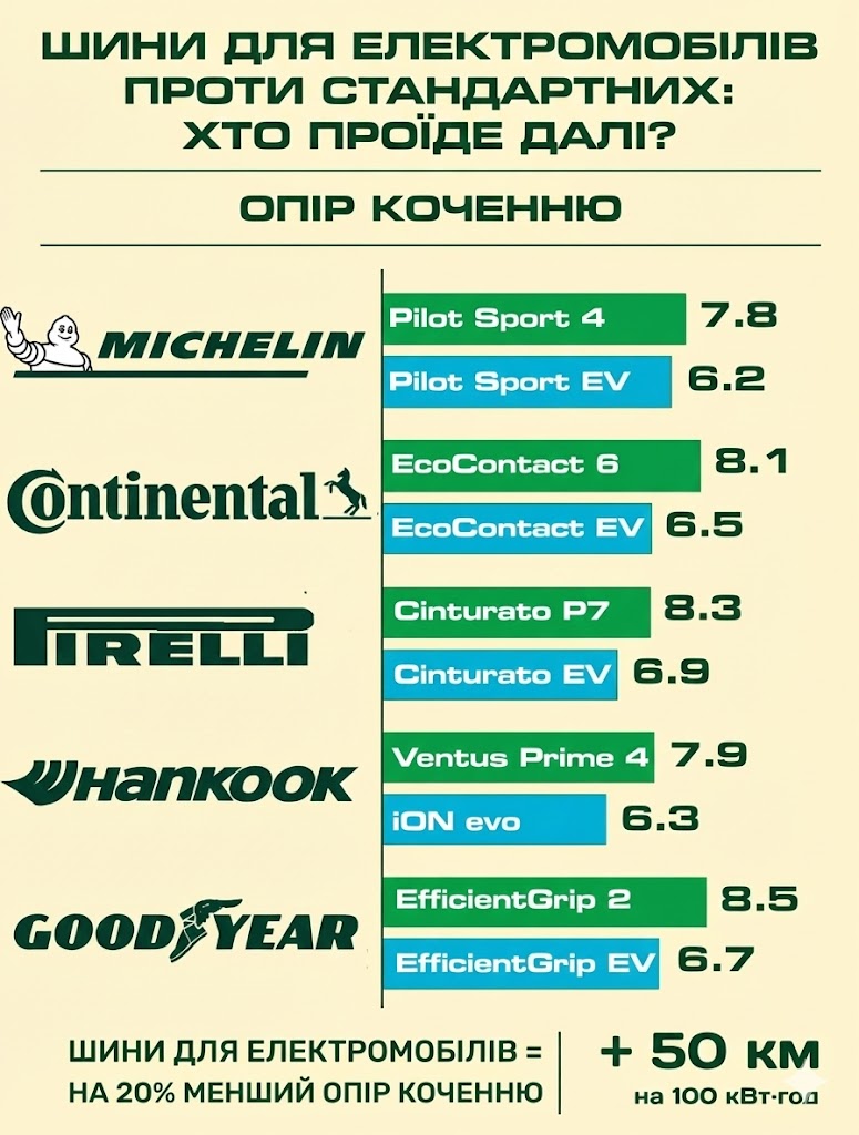 Якщо коротко: звичайні шини на електромобілі працюють, але карають вас запасом ходу, комфортом і ресурсом.